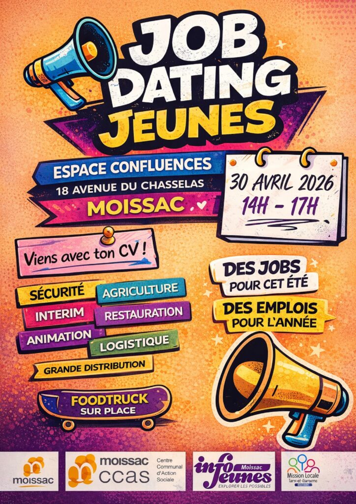À la recherche d’un emploi, d’un job d’été ou d’une première expérience professionnelle ? Ne manquez pas le Forum Job Dating de la Ville de Moissac !